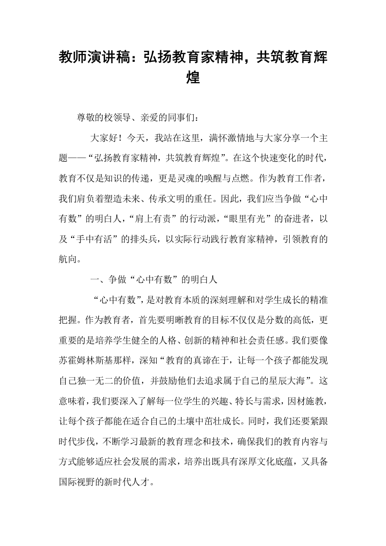 教师演讲稿:弘扬教育家精神,共筑教育辉煌