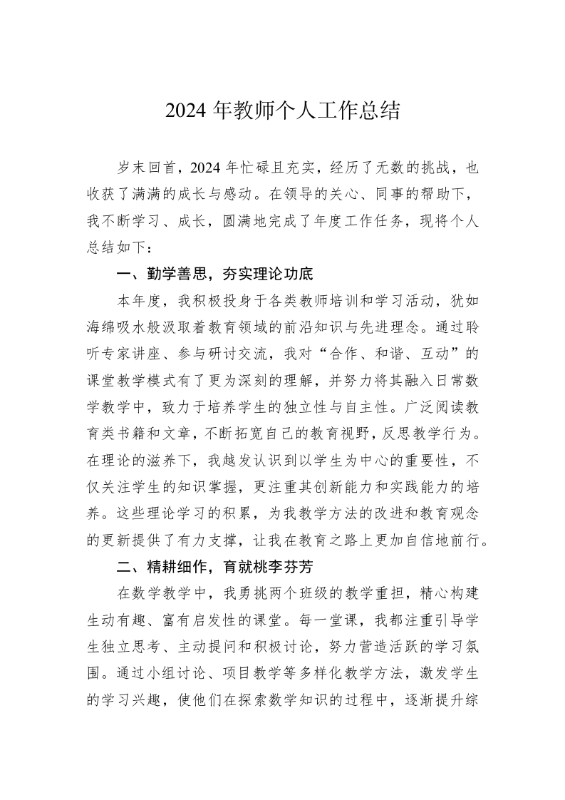 2024年教师个人工作总结