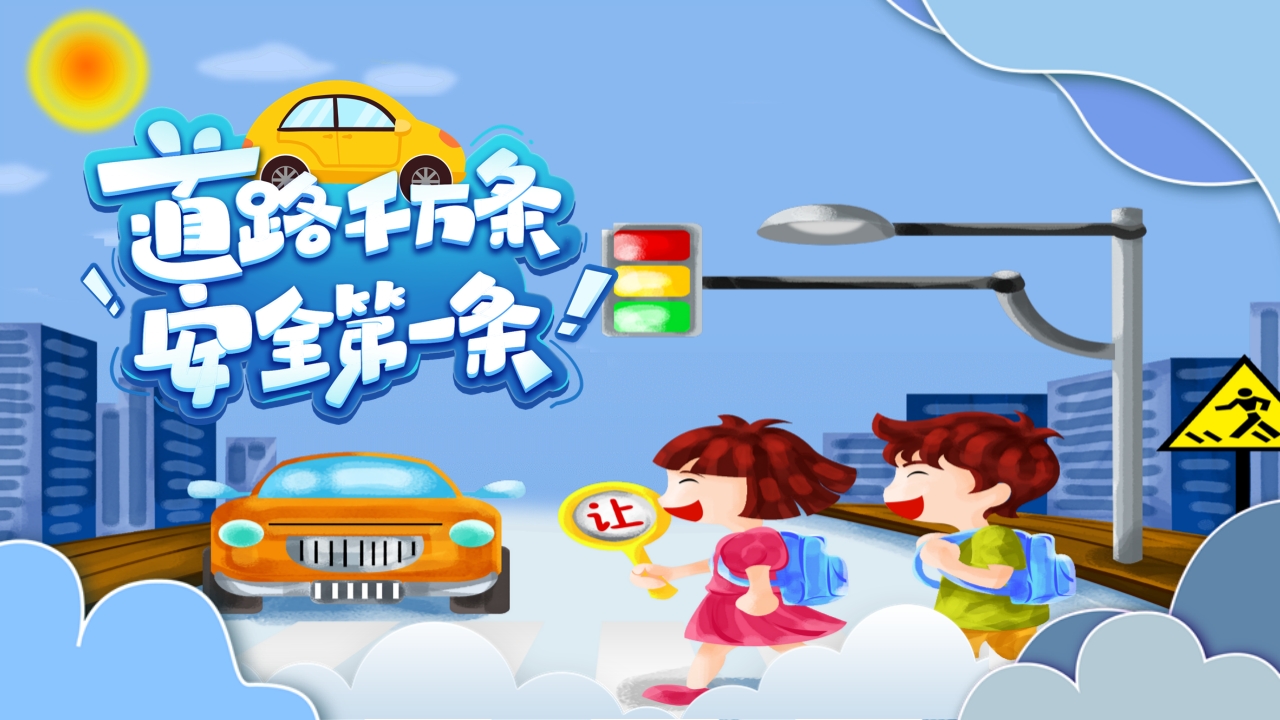 首页PPT校园安全PPT交通安全卡通交通安全知识宣传PPT