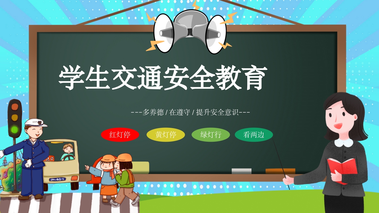 首页PPT校园安全PPT交通安全黑板卡通风交通安全教育PPT
